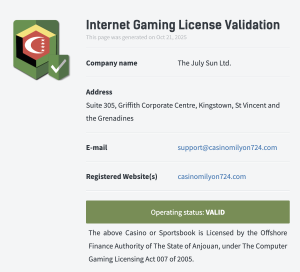 Casinomilyon, Curacao lisansı ile hizmet veren çevrim içi bir platformdur. Tüm faaliyetler Curacao Lisans Denetleme Kurulu gözetiminde yürütülmektedir. Kullanıcılar, güvenilir altyapı sayesinde yüksek güvenlikli bir ortamda oyunlarını oynayabilir ve keyifli vakit geçirebilir.